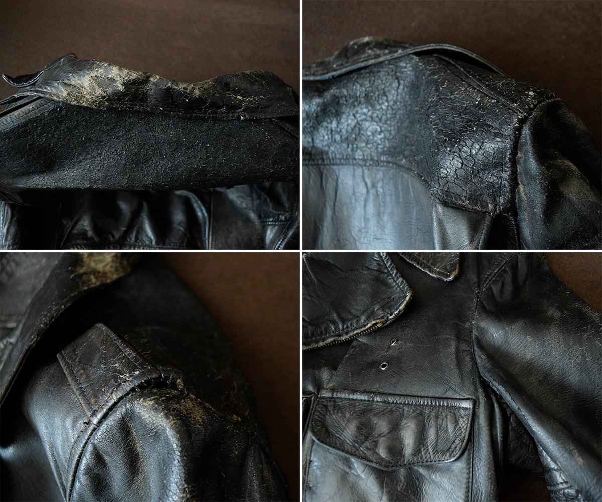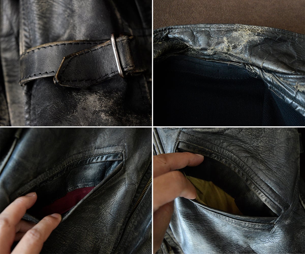 レザーは経年劣化でダメージだらけですがしなやかさは保っています。