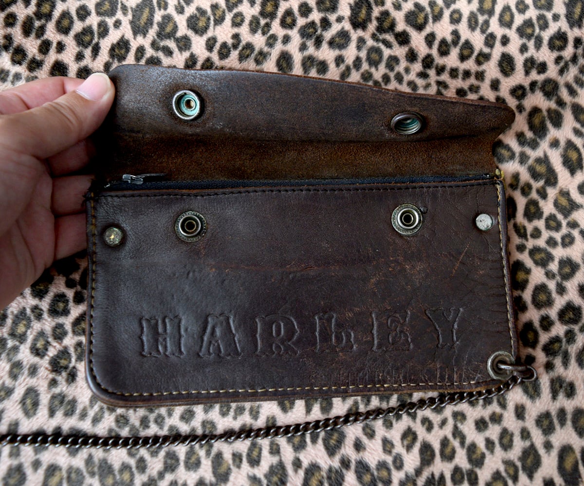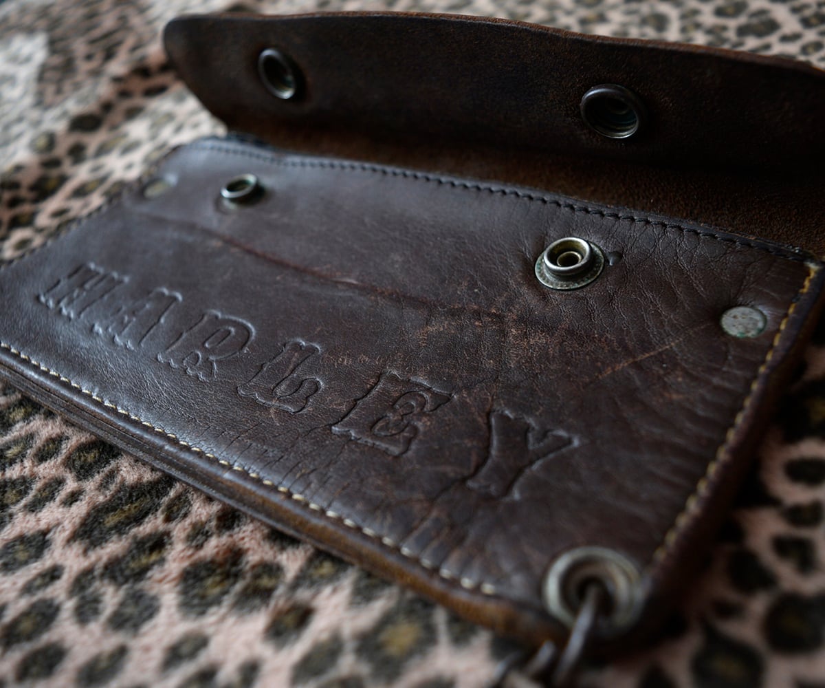 ポイントは「HARLEY」の刻印でウエスタン調の縁取り型押し文字。