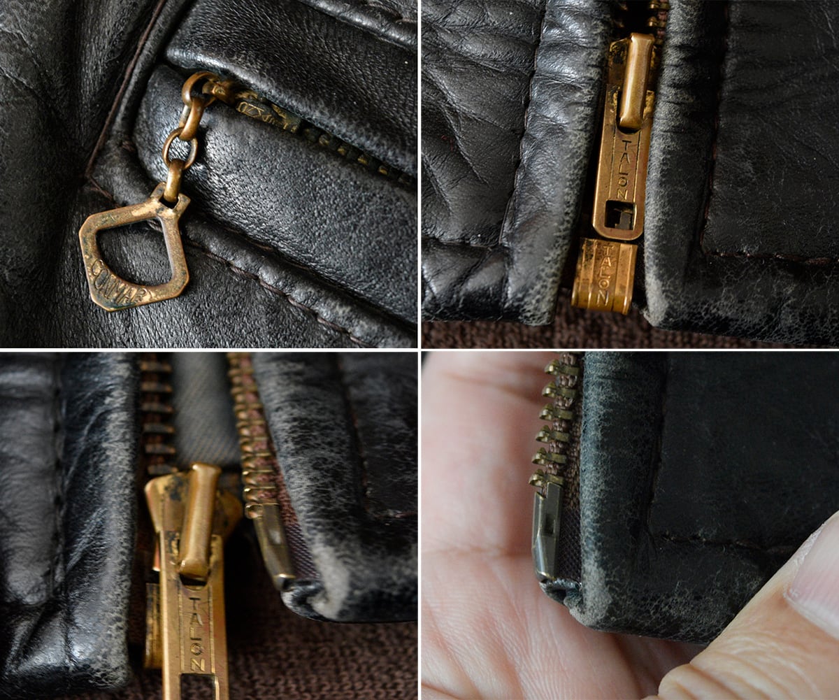 メインジッパーは古いブランド名刻印入りの棒型TALONジッパー。