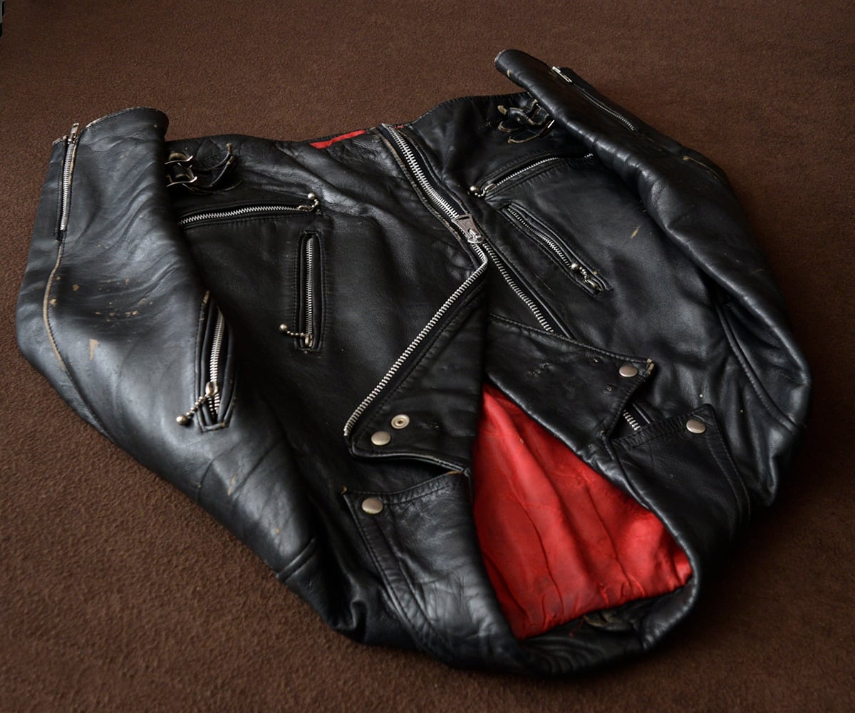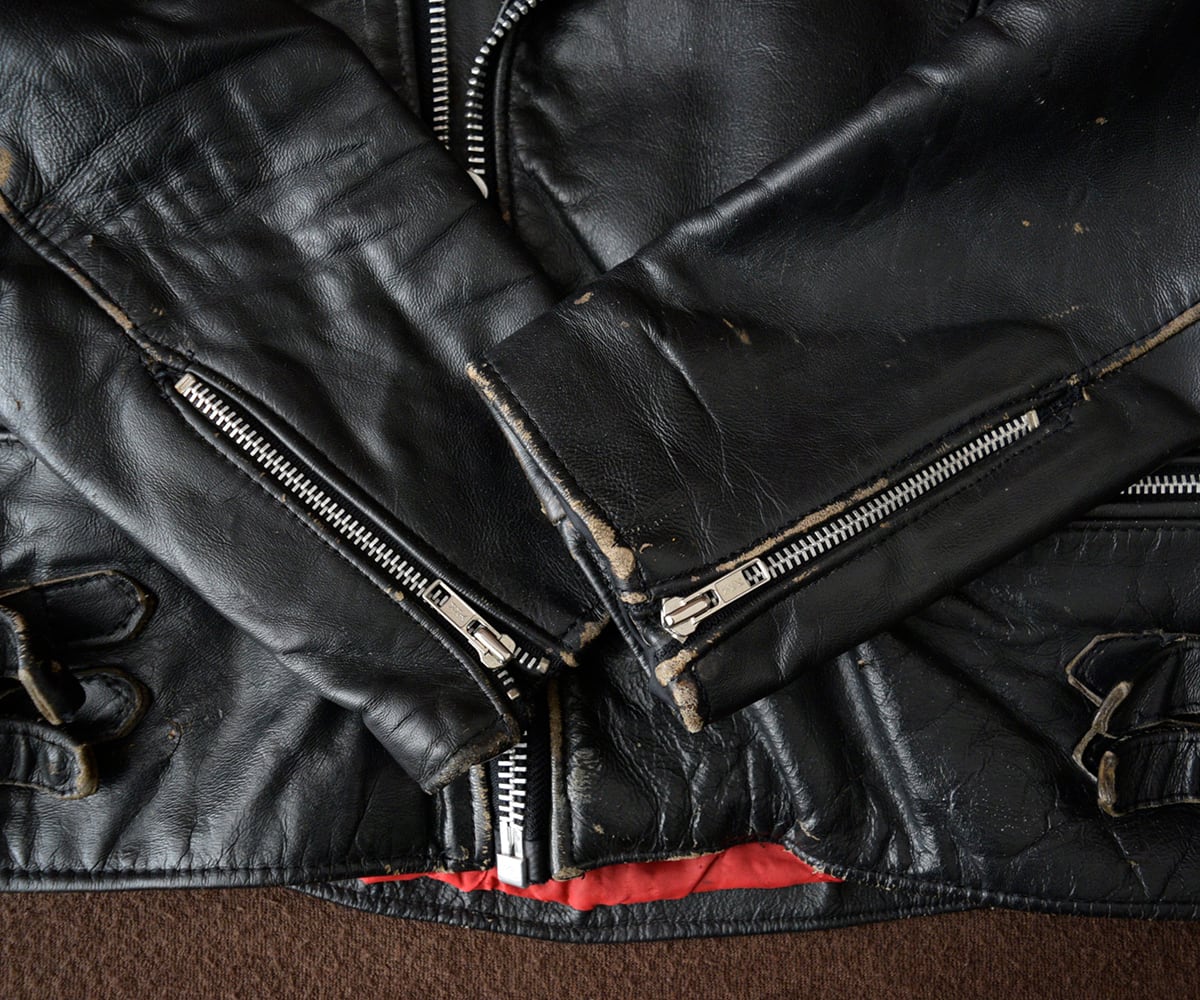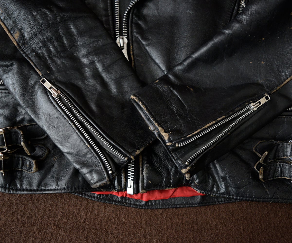 テカテカの現行品よりもちょっとやれた感じのUKライダースが