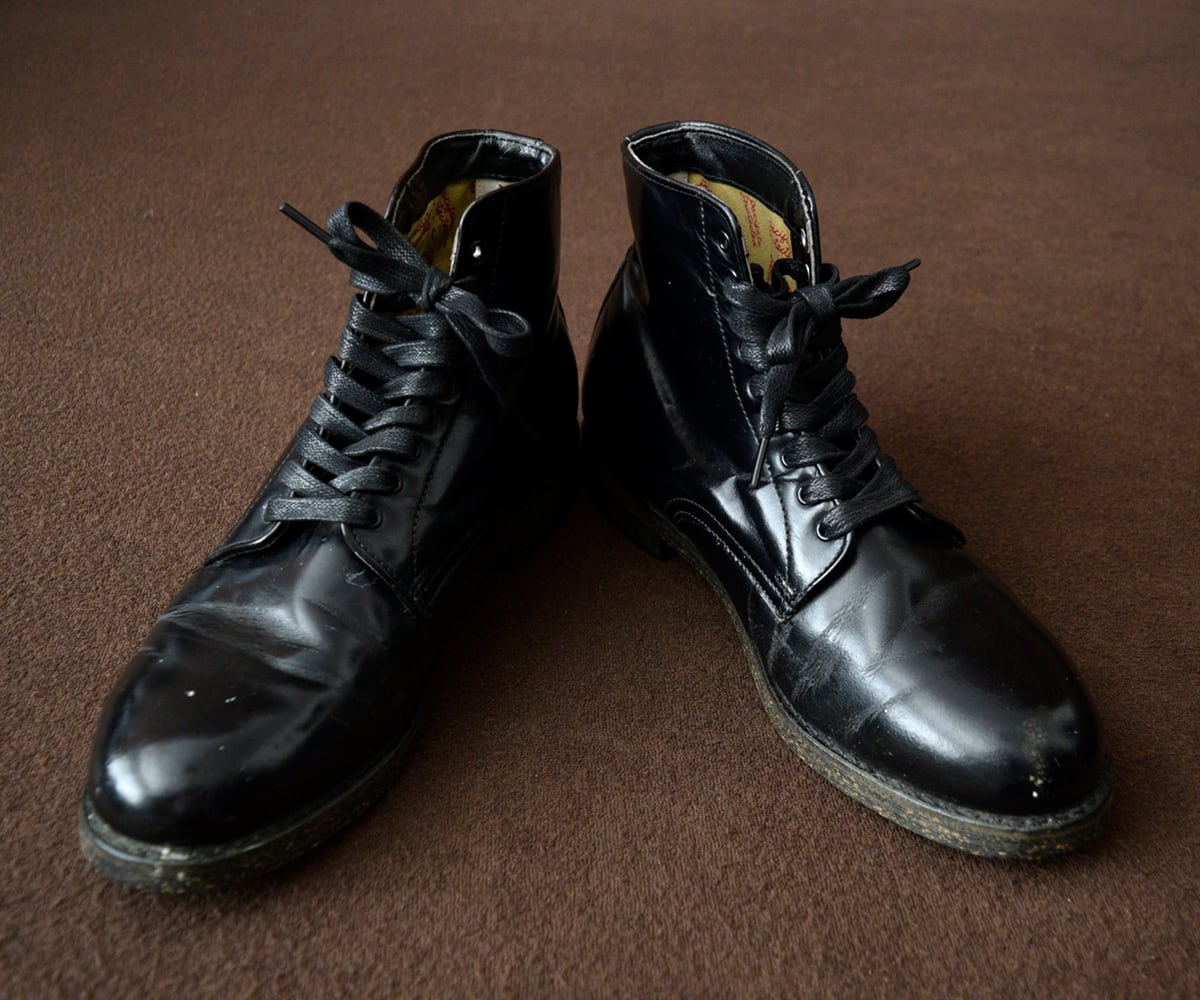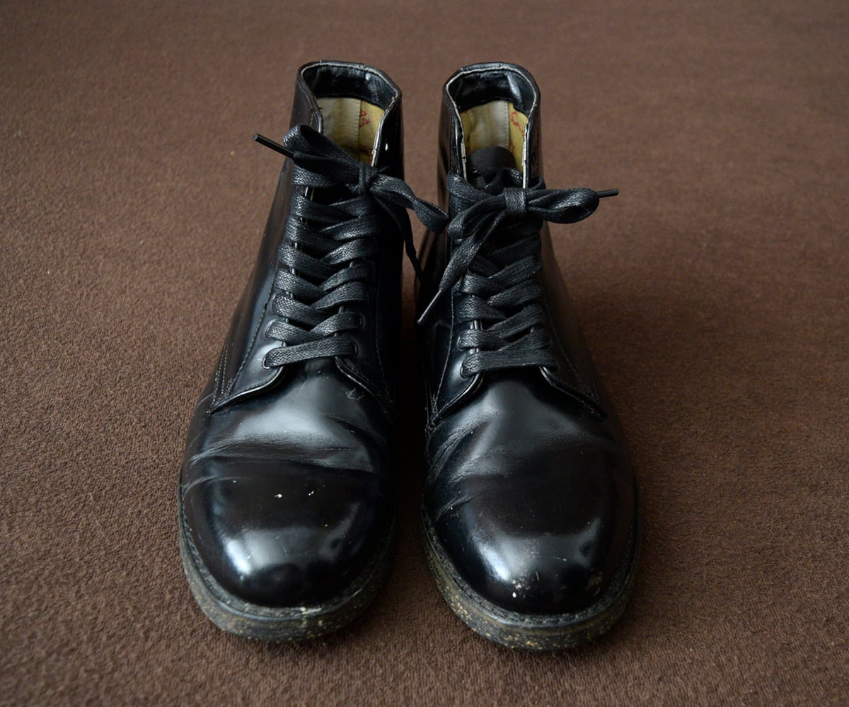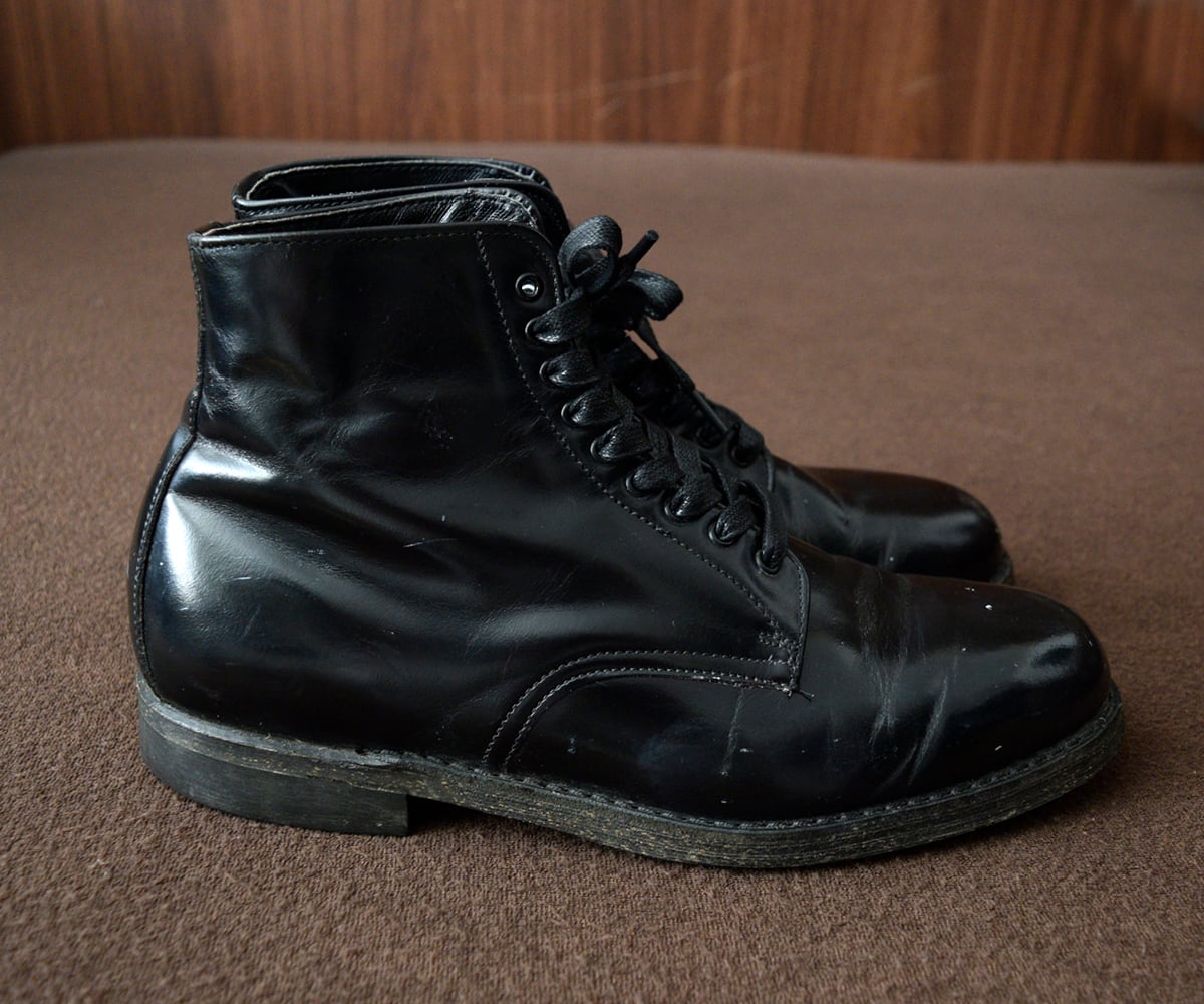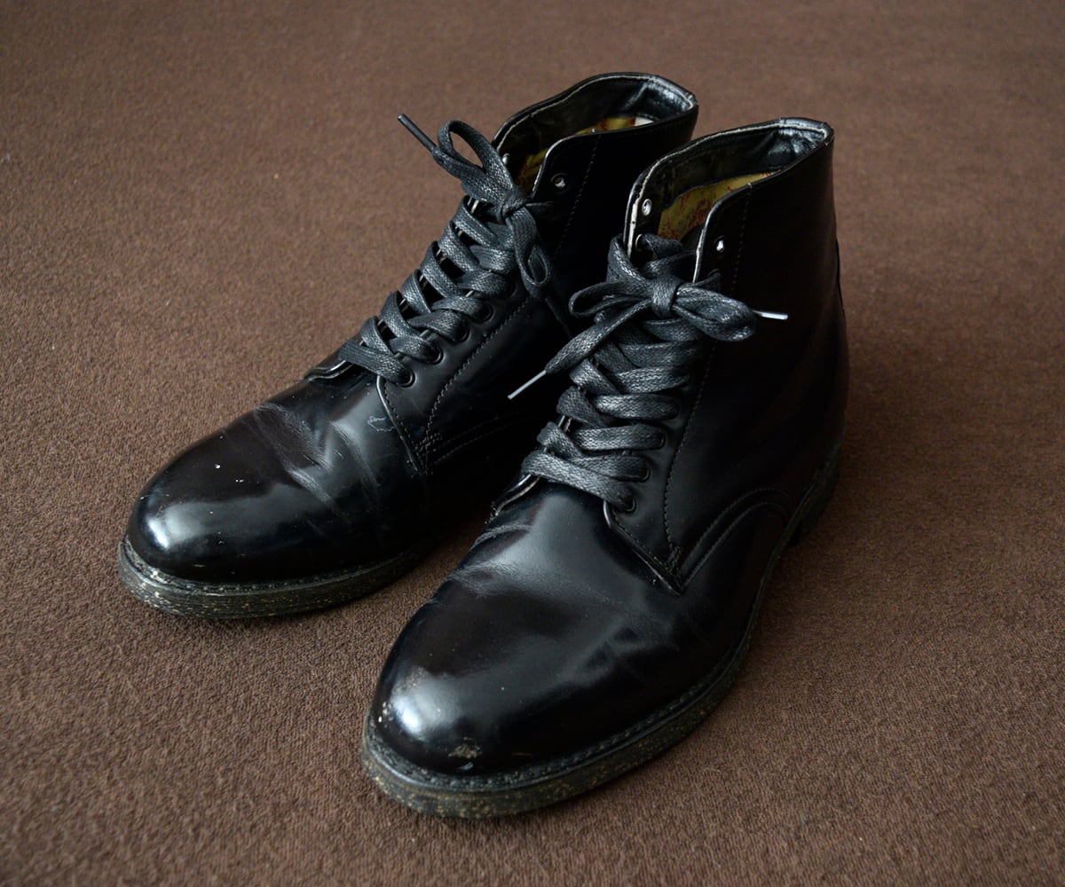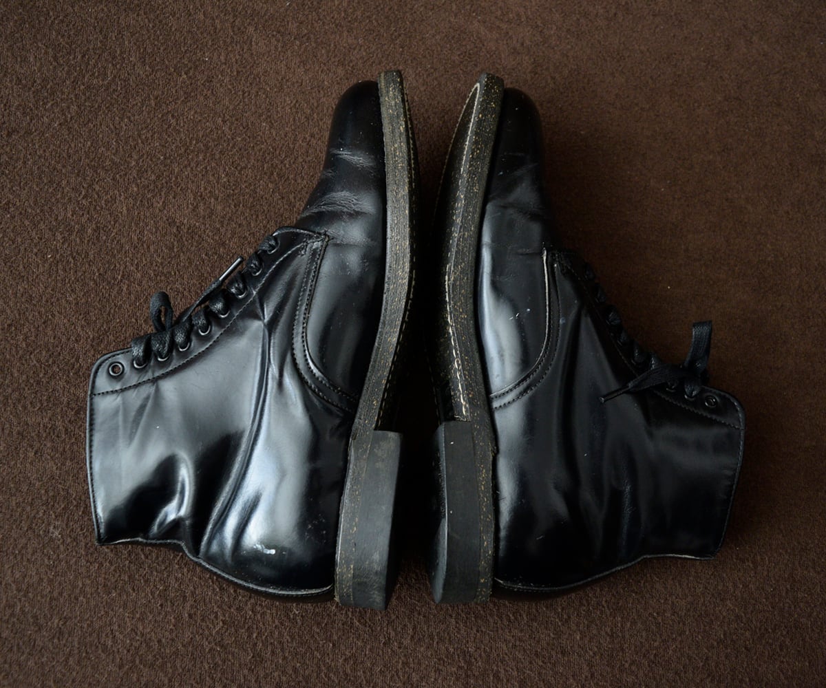 上質で光沢のあるレザー、ずっしりと重量感のあるワークブーツ、