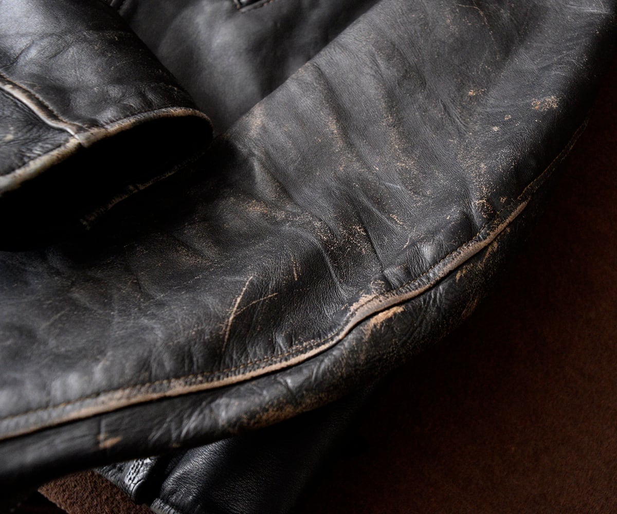 レザーは非常に柔らかく特に背中のシボ感が味わい深い。