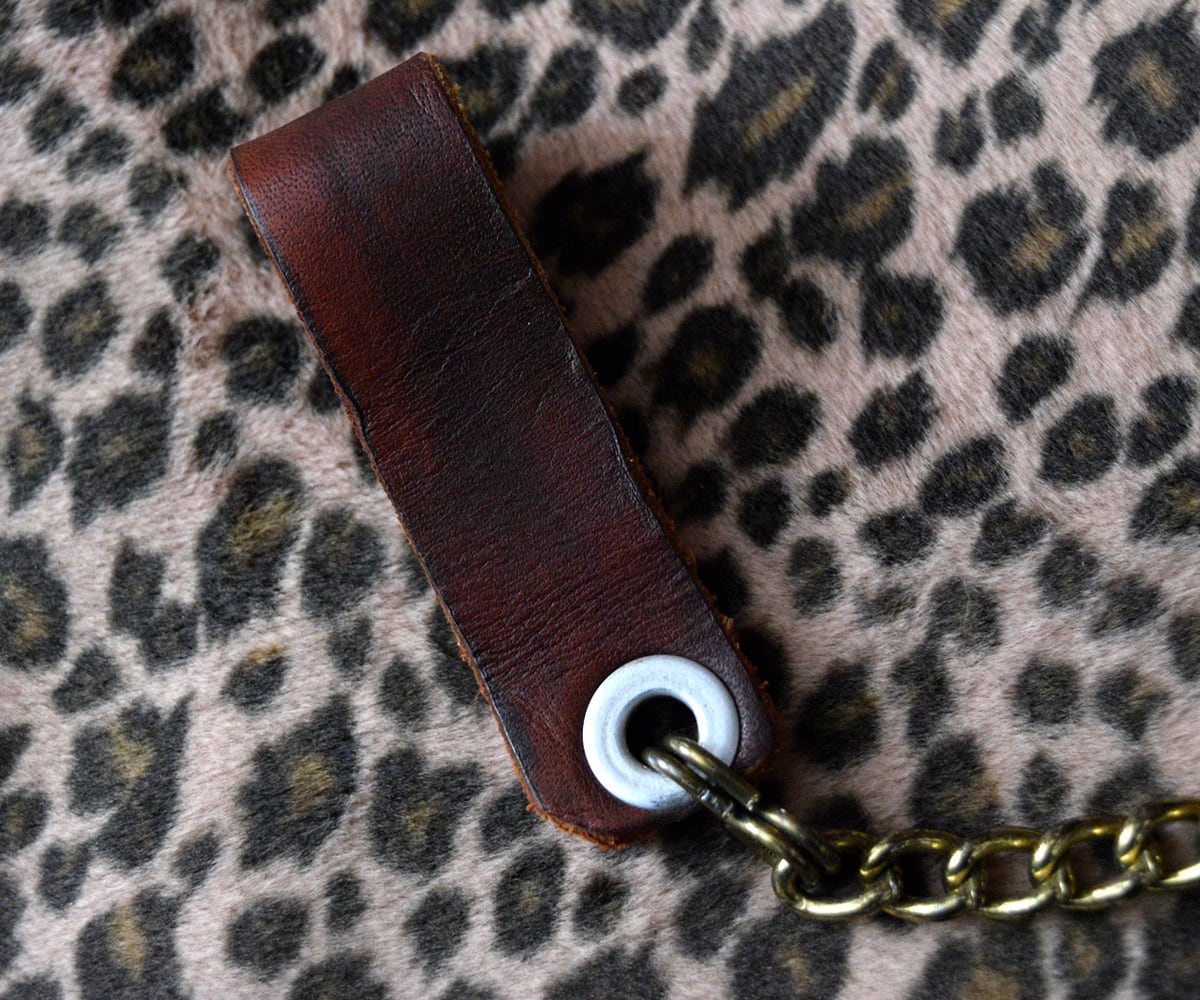 ゴールドのチェーン、ブラス製のスナップボタンやジッパーがかなり良い雰囲気。