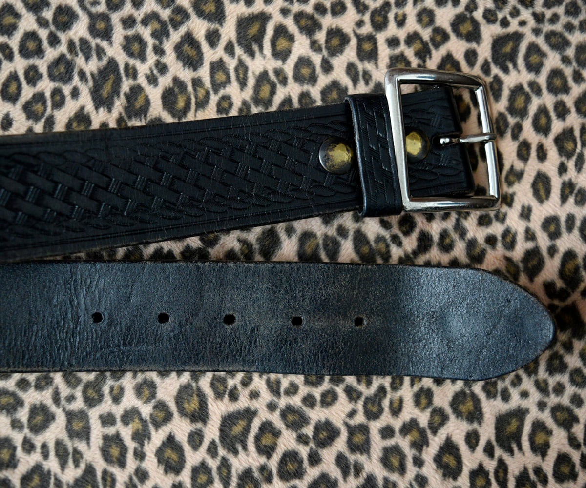アメリカのポリスマンがしているようなバスケット柄型押しベルトです。