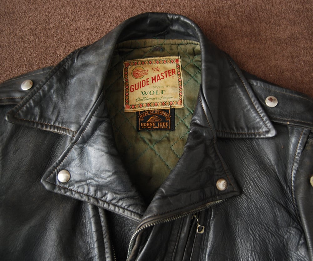 1940~50年代頃の"GUIDE MASTER by WOLF"ホースハイドライダースになります。