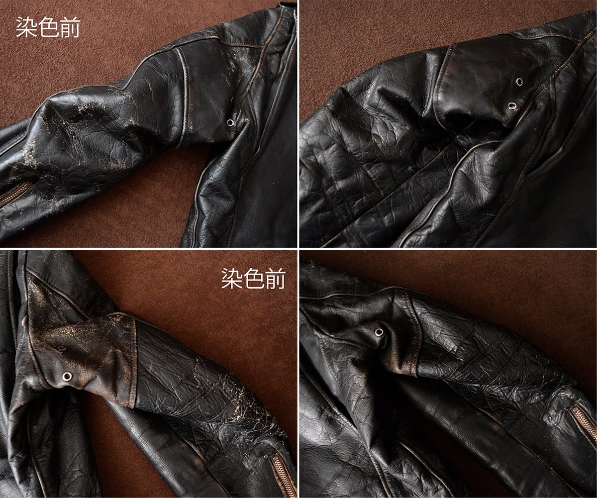 茶芯レザーにラッカー塗装のため元々アタリが出やすいレザーです。